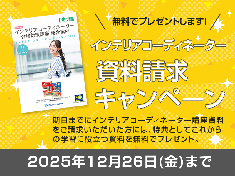 2026年度試験対応「インテリアコーディネーター合格対策講座」受講生募集中!<在宅(Eラーニング)>