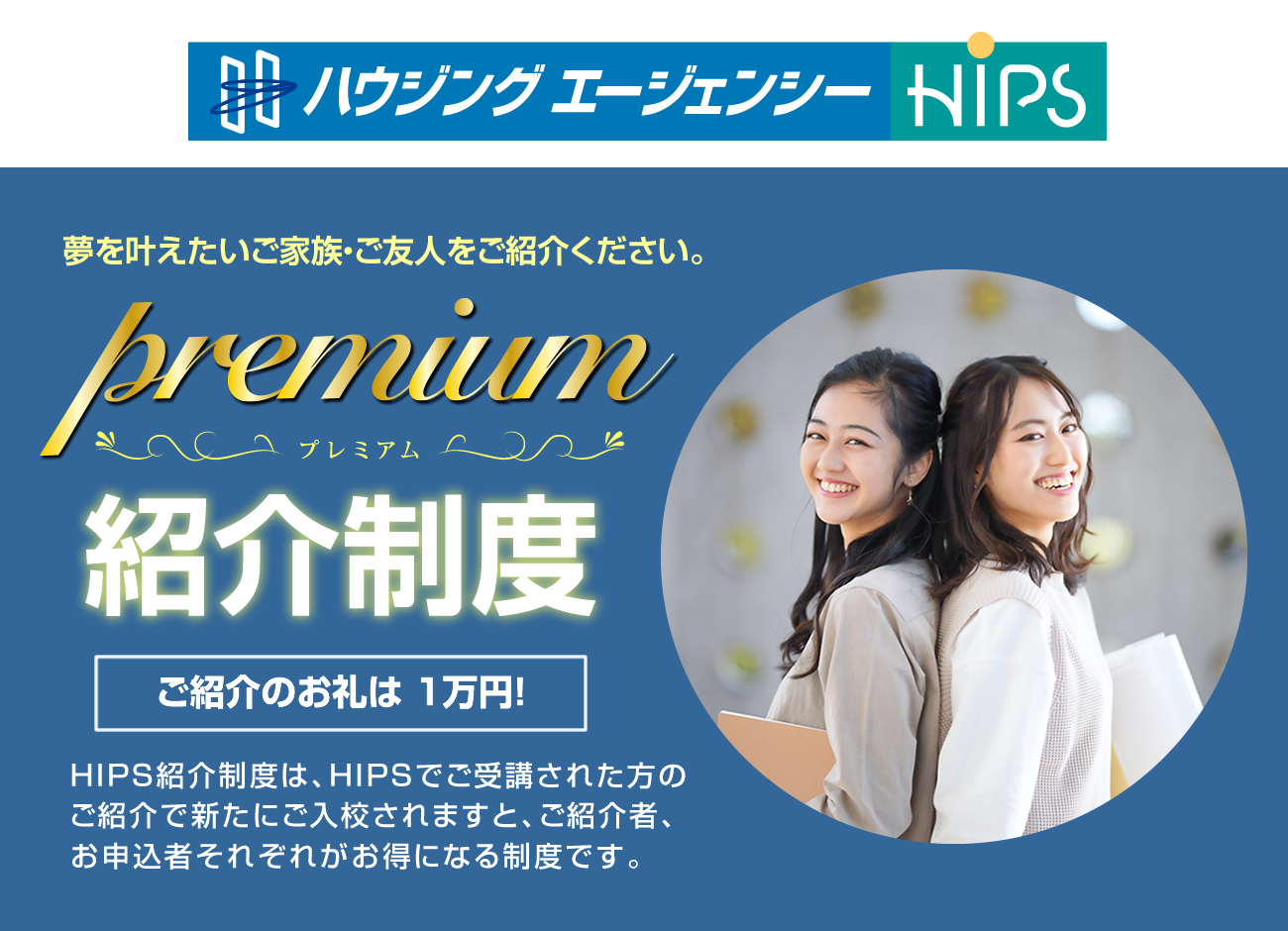 ※HIPSで受講した方以外の紹介でもOK!HIPSをご推薦いただける方のご紹介であれば受講歴の有無を問わず対象となります。