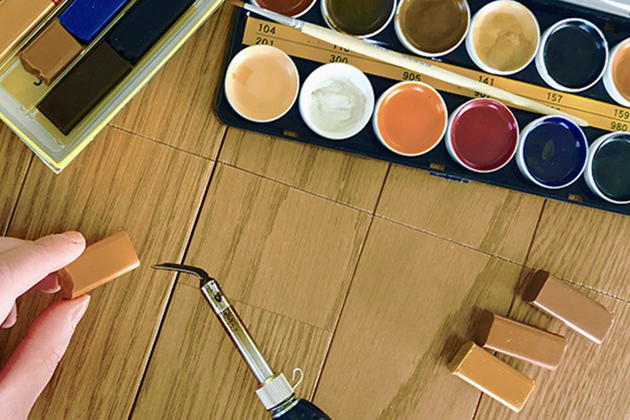 ウッドリペアマイスター2級取得者を対象とした講座です。難易度の高い調色、補修をマスターします。