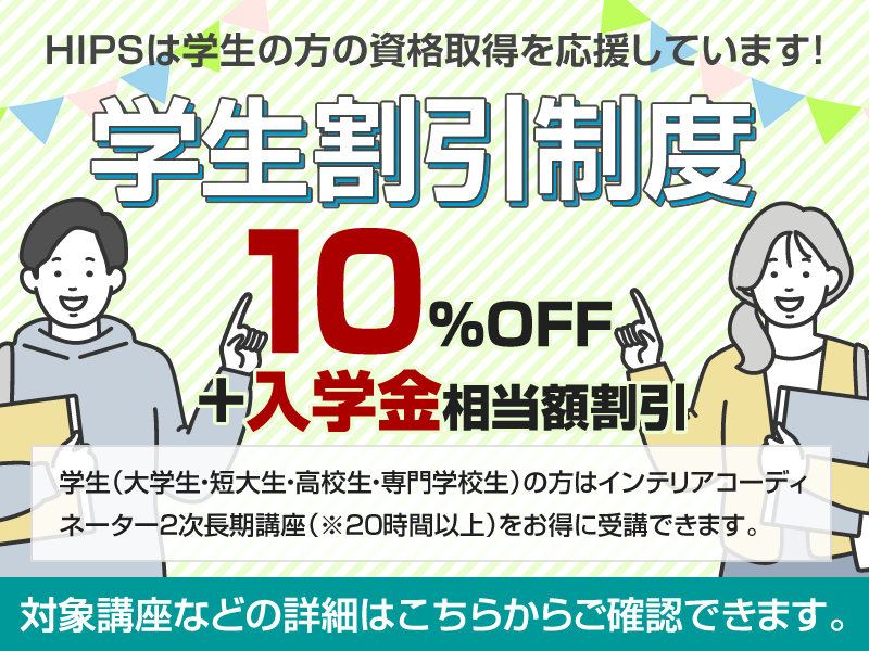 HIPSでは、『インテリアコーディネーター1次試験対策講座』も随時募集しています。